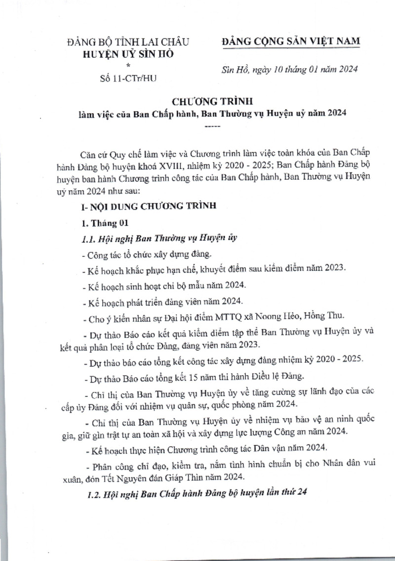 | Tiêu đề văn bản | Chương trình làm việc của Ban Chấp hành, Ban Thường vụ Huyện ủy năm 2024 | ||