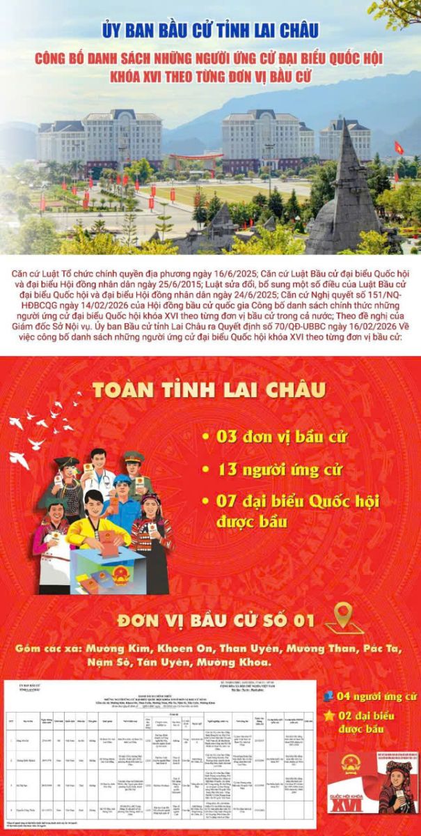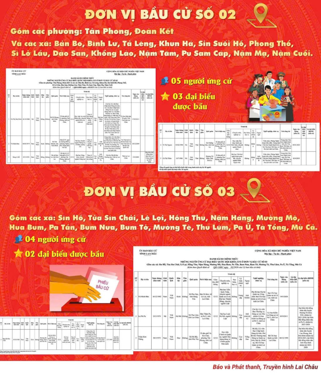 Ủy ban Bầu cử tỉnh Lai Châu Công bố danh sách những người ứng cử đại biểu Quốc hội khóa XVI theo từng đơn vị bầu cử