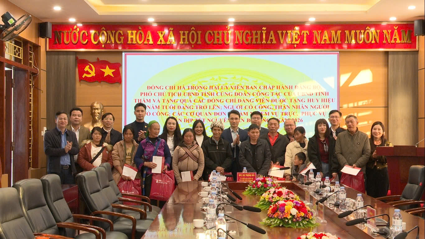 Đoàn cũng đã đến thăm, tặng quà ông Mùa A Thào ở thôn 2 xã Sìn Hồ là đảng viên 66 năm tuổi Đảng và bà Tẩn Lai Sông ở thôn 5 xã Sìn Hồ là đảng viên 63 năm tuổi Đảng. Nhân dịp Tết Nguyên đán Bính Ngọ năm 2026, đồng chí Phó Chủ tịch UBND tỉnh Hà Trọng Hải đã trao tặng quà Tết và gửi lời chúc mừng năm mới tới các đảng viên được tặng Huy hiệu 60 năm tuổi Đảng trở lên, mong các đồng chí và gia đình tiếp tục phát huy truyền thống cách mạng, gương mẫu chấp hành tốt chủ trương của Đảng, chính sách, pháp luật của Nhà nước, tích cực tham gia các phong trào thi đua tại địa phương.