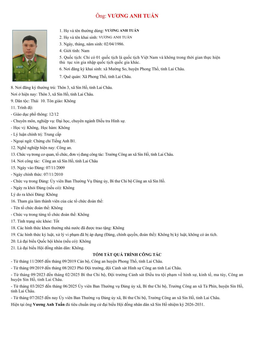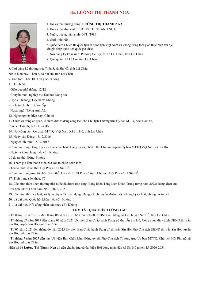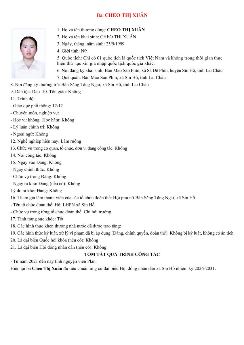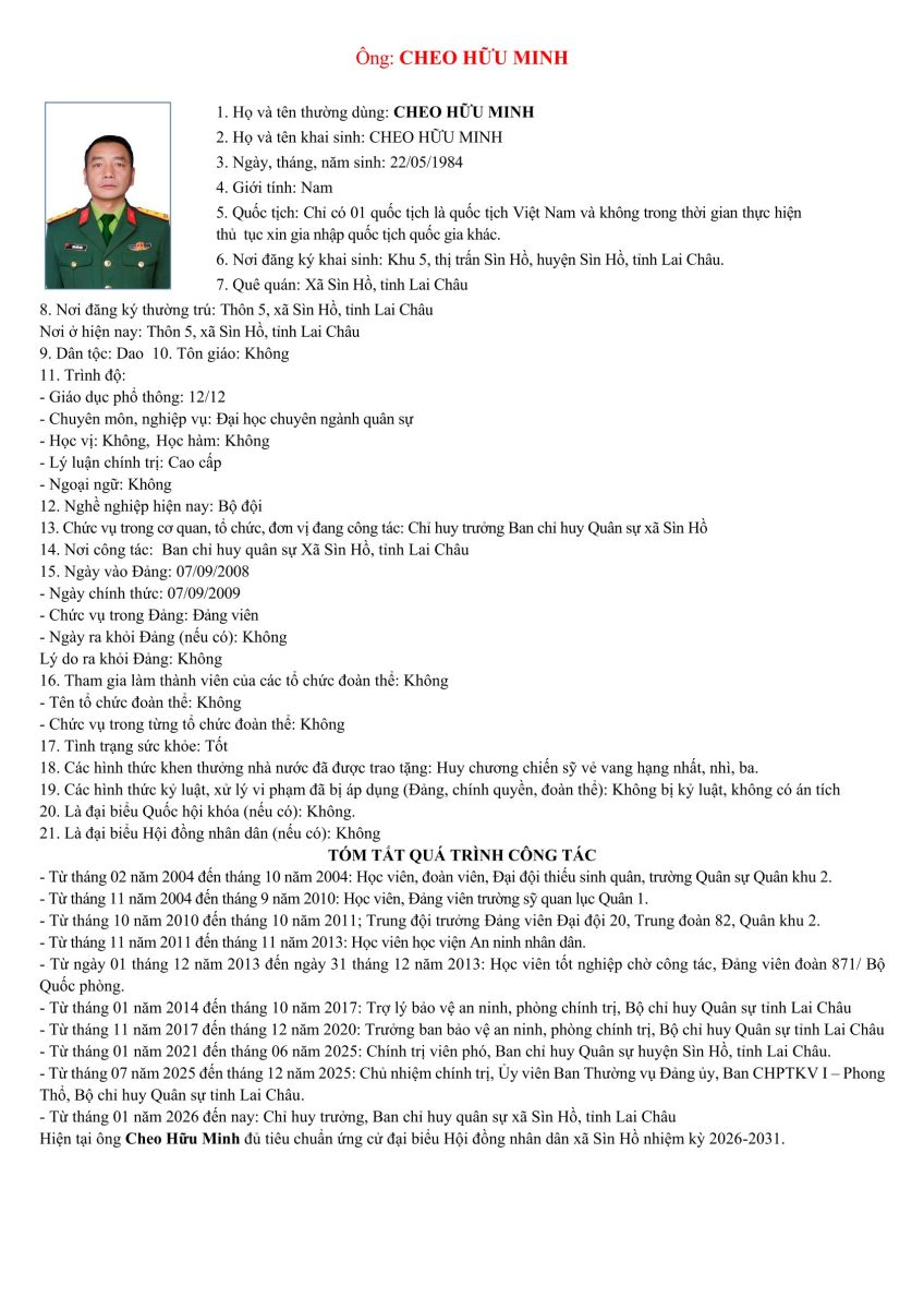 TIỂU SỬ TÓM TẮT NHỮNG NGƯỜI ỨNG CỬ ĐẠI BIỂU HỘI ĐỒNG NHÂN DÂN XÃ SÌN HỒ KHÓA II NHIỆM KỲ 2026-2031. ĐƠN VỊ BẦU CỬ SỐ 3