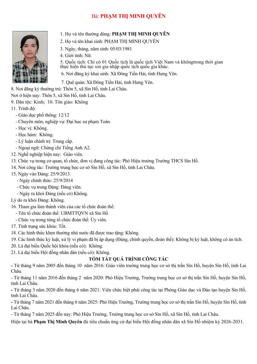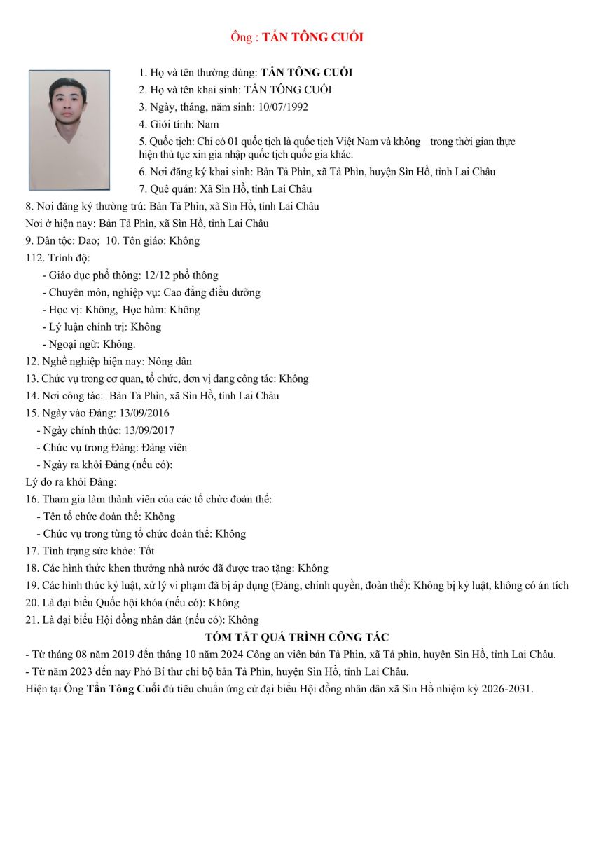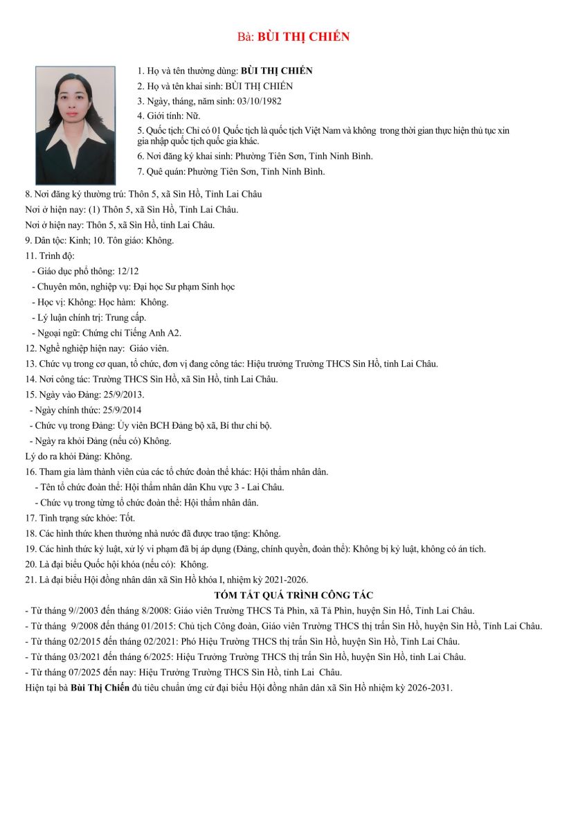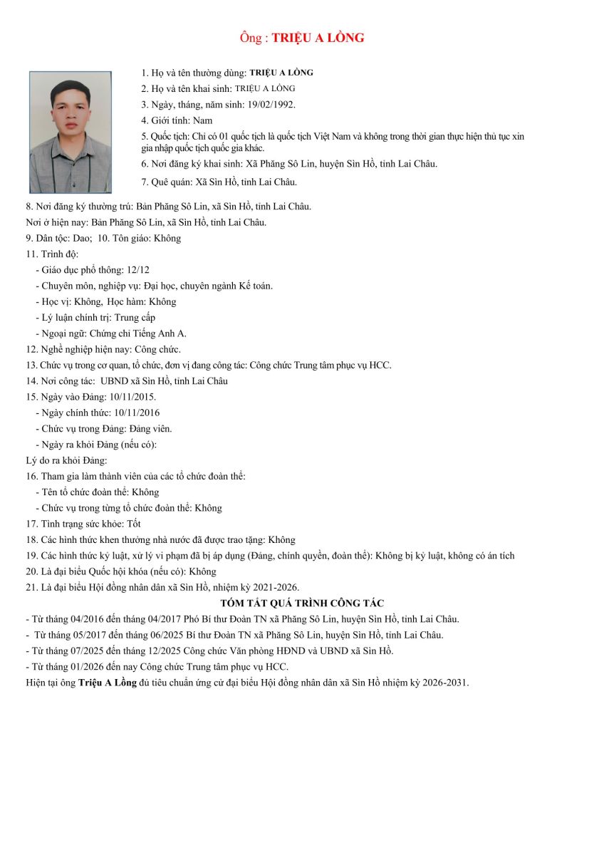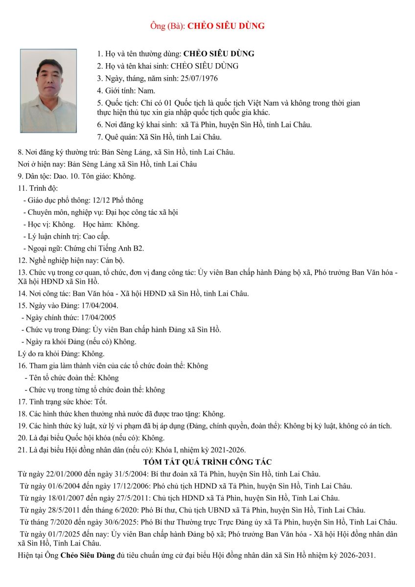 TIỂU SỬ TÓM TẮT NHỮNG NGƯỜI ỨNG CỬ ĐẠI BIỂU HỘI ĐỒNG NHÂN DÂN XÃ SÌN HỒ KHÓA II NHIỆM KỲ 2026-2031. ĐƠN VỊ BẦU CỬ SỐ 5