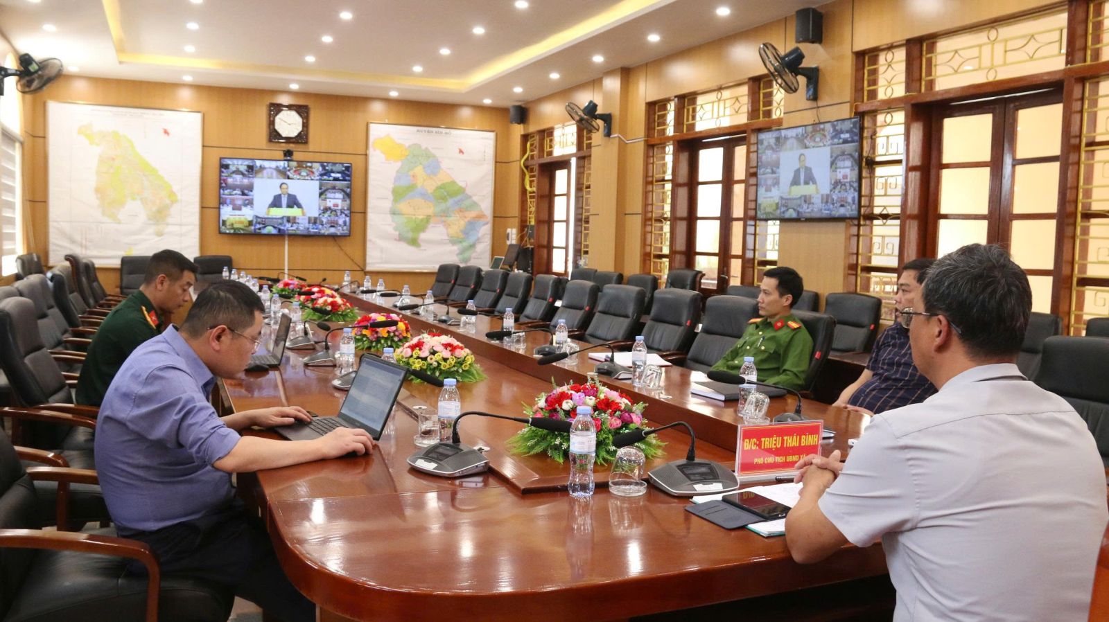 Tại điểm cầu xã Sìn Hồ có đồng chí Triệu Thái Bình-Phó chủ tịch UBND xã Sìn Hồ, các thành viên Ban Chỉ huy Phòng thủ dân sự xã.