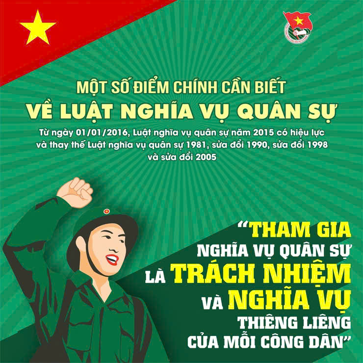 Để góp phần xây dựng an ninh quốc phòng, xây dựng và bảo vệ Tổ quốc. Ngày 19/6/2015, tại kỳ họp thứ 9, Quốc hội nước Cộng hòa xã hội chủ nghĩa Việt Nam Khóa XIII, đã thông qua Luật nghĩa vụ quân sự và có hiệu lực thi hành ngày 01 tháng 01 năm 2016.