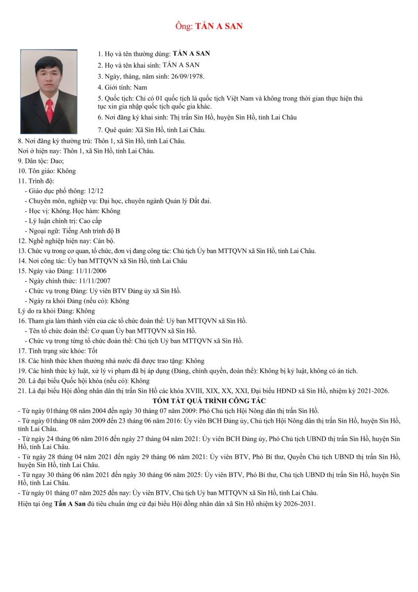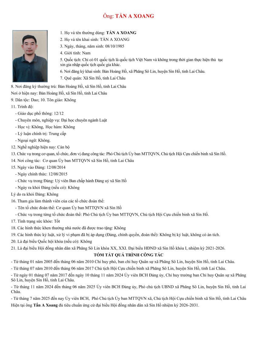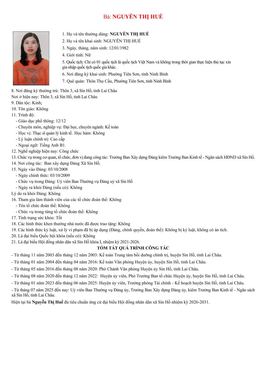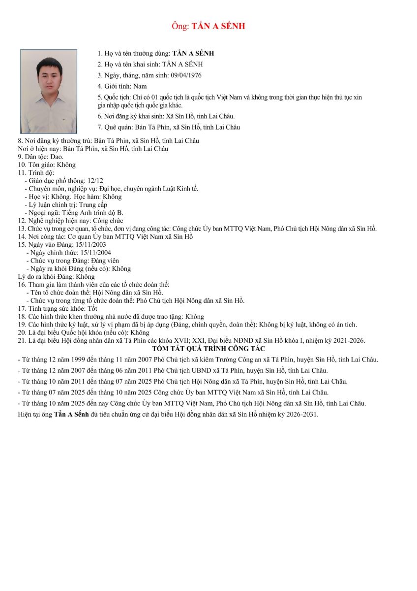 TIỂU SỬ TÓM TẮT NHỮNG NGƯỜI ỨNG CỬ ĐẠI BIỂU HỘI ĐỒNG NHÂN DÂN XÃ SÌN HỒ KHÓA II NHIỆM KỲ 2026-2031. ĐƠN VỊ BẦU CỬ SỐ 2
