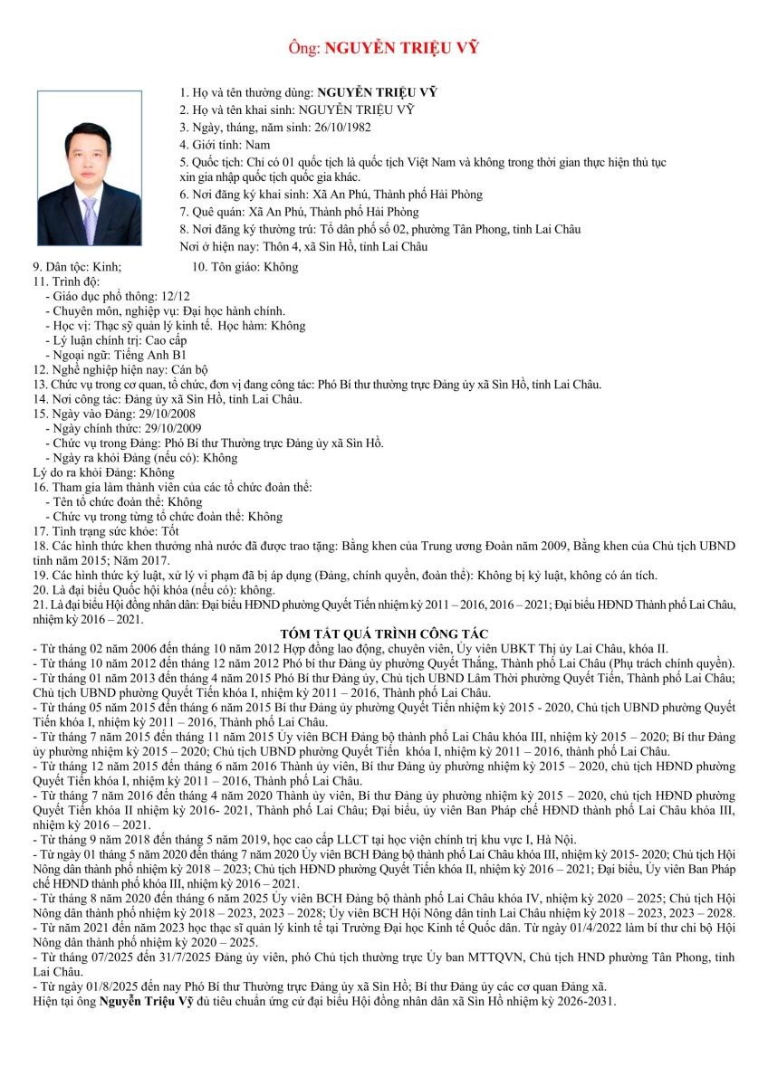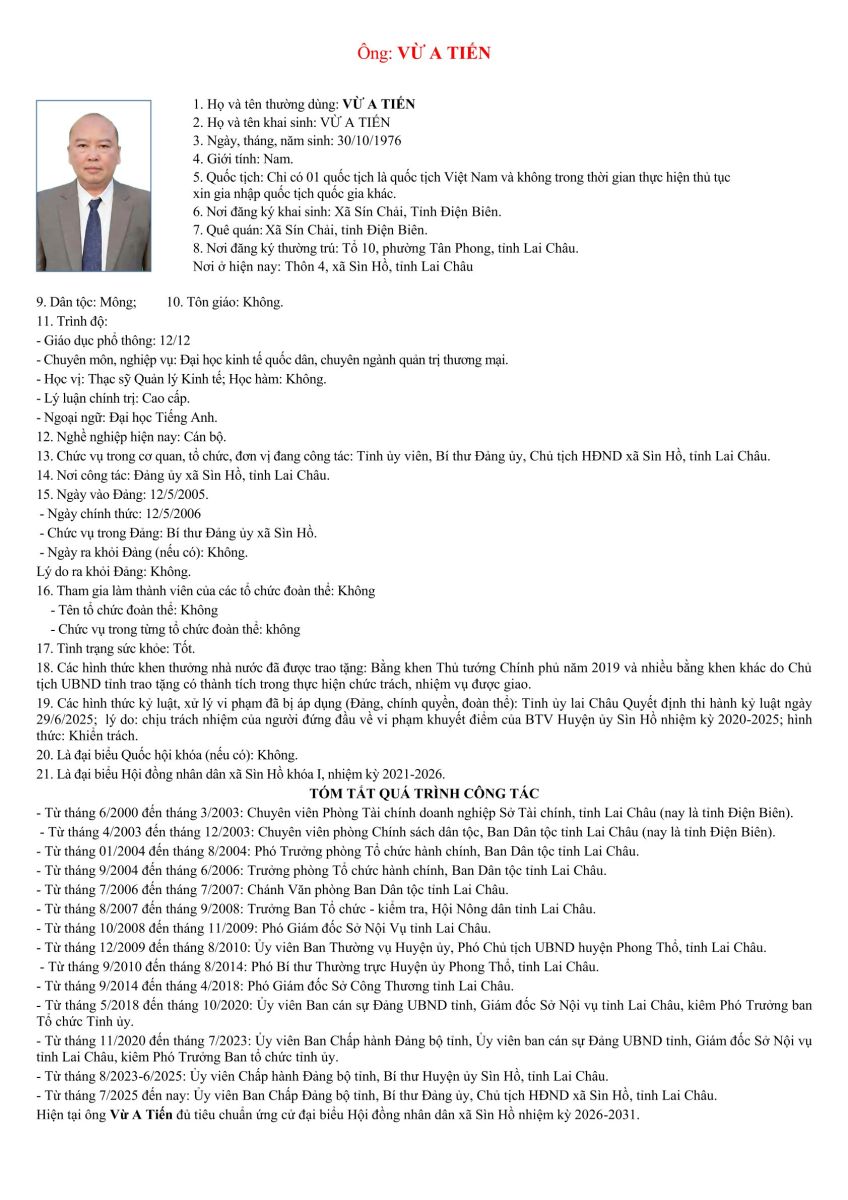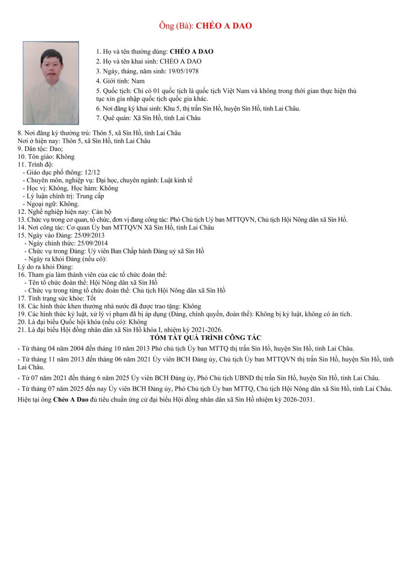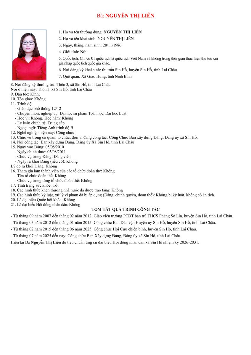 TIỂU SỬ TÓM TẮT NHỮNG NGƯỜI ỨNG CỬ ĐẠI BIỂU HỘI ĐỒNG NHÂN DÂN XÃ SÌN HỒ KHÓA II NHIỆM KỲ 2026-2031. ĐƠN VỊ BẦU CỬ SỐ 2