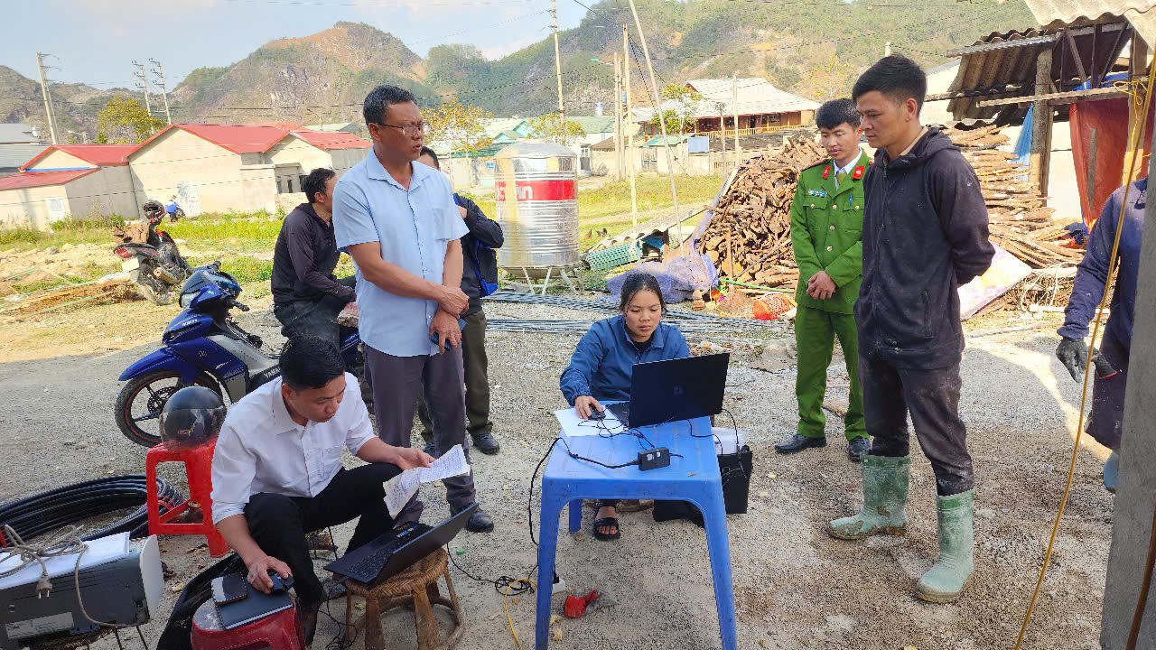 Tổ công tác của UBND xã Sìn Hồ làm việc với hộ gia đình anh Tẩn A Ngái về lĩnh vực đất đai
