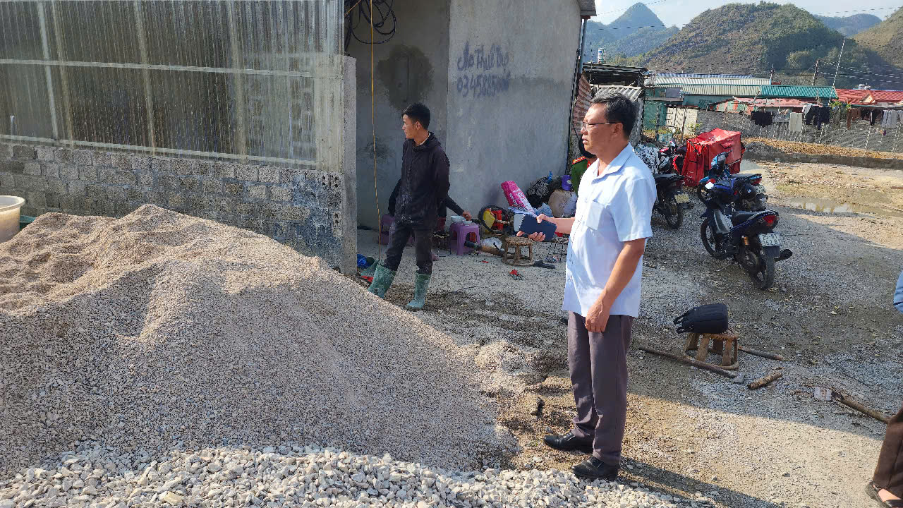 Qua kiểm tra, được biết gia đình anh Tẩn A Ngái đã bắt đầu xây dựng nhà ở từ ngày 21 tháng 3 năm 2026, hiện đang xây dựng công trình nhà ở: đã đổ móng, dựng cột sắt, giằng khung, kè đá và đang tập kết vật liệu xây dựng gồm xi măng, gạch, đá, cát....; trước khi xây dựng là đất trồng lúa khác.
