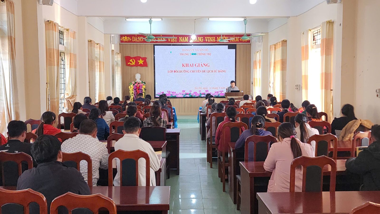 Sáng ngày 14/4, Trung tâm Chính trị Sìn Hồ tổ chức khai giảng lớp bồi dưỡng chuyên đề “Lịch sử Đảng” Dự khai giảng có đồng chí lãnh đạo Trung tâm chính trị, Hội Liên hiệp phụ nữ, Đoàn thanh niên xã.