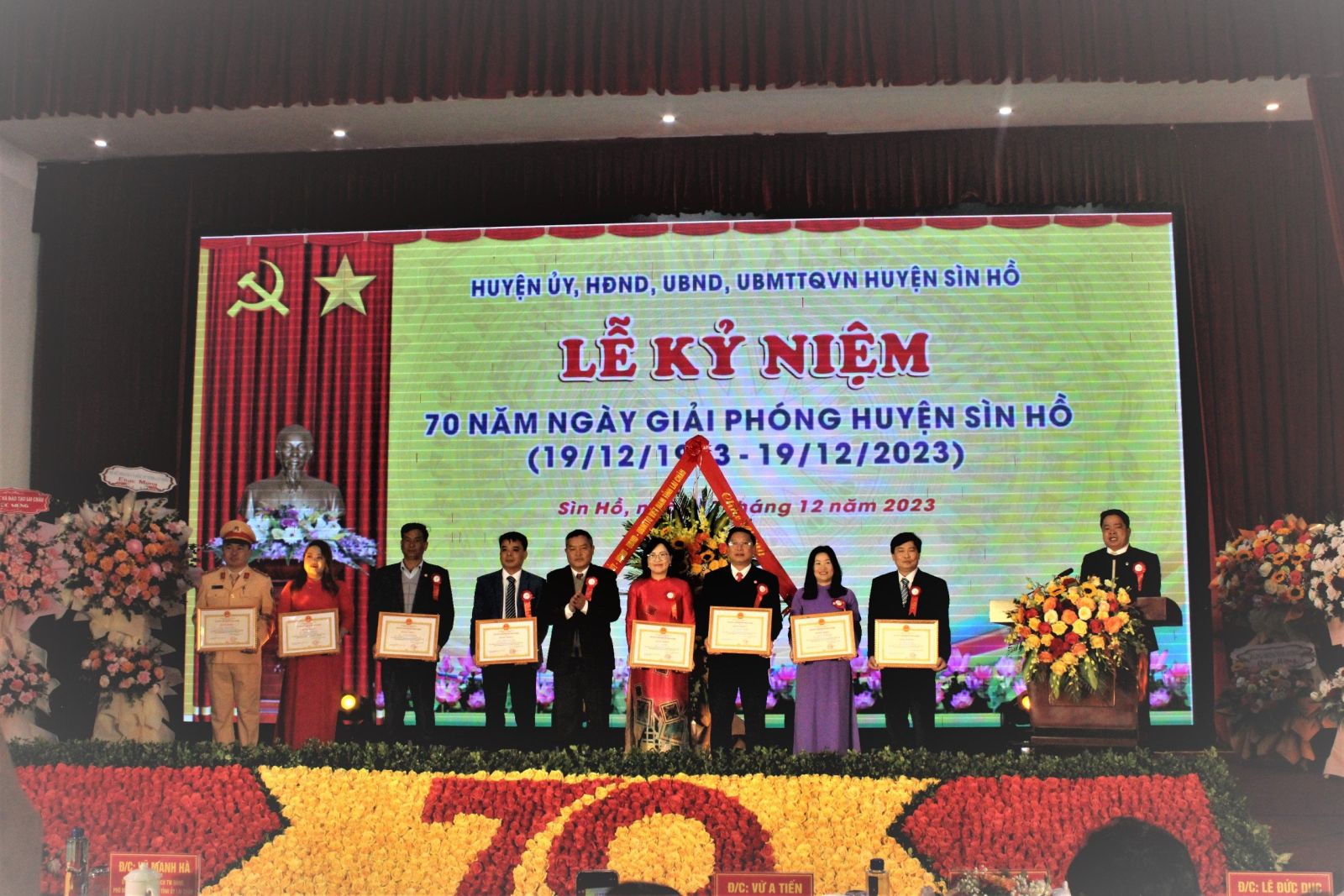 Dịp này, UBND tỉnh tặng bằng khen cho 15 tập thể, 43 cá nhân, 8 hộ gia đình; UBND huyện Sìn Hồ tặng giấy khen cho 40 tập thể, 168 cá nhân và 17 hộ gia đình có thành tích xuất sắc, tiêu biểu trong phong trào thi đua yêu nước nhân dịp kỷ niệm 70 năm ngày giải phóng huyện Sìn Hồ (19/12/1953 – 19/12/2023).